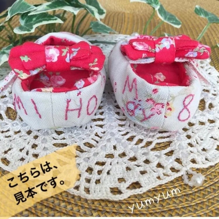 幅7センチ、大きさ11センチ、リボンの大きさ5.5センチ(1足分)